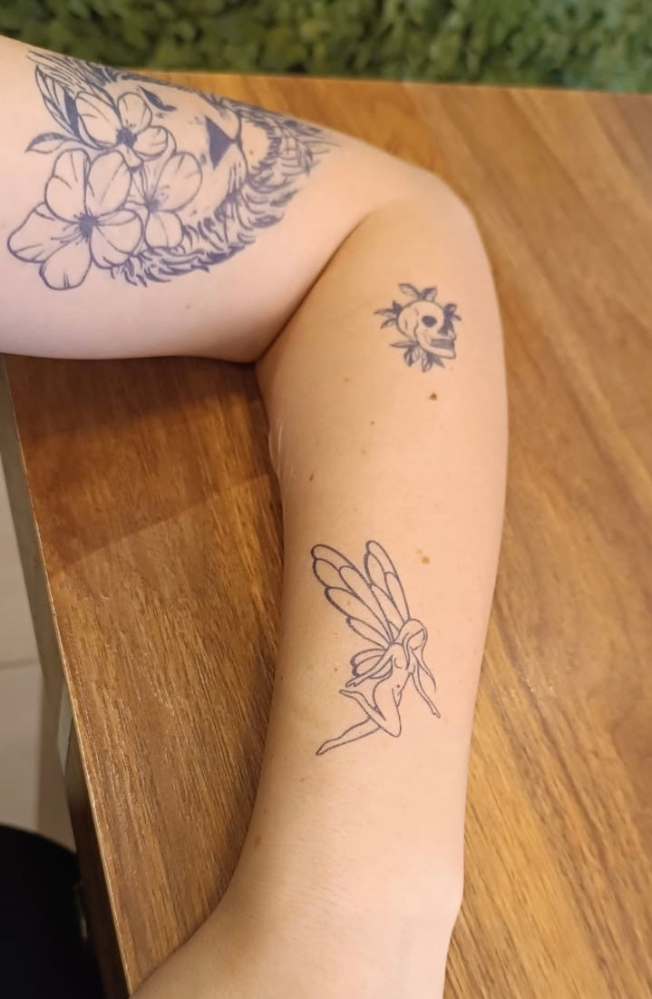 Higienize o local da tatuagem com o primer higienizador Cole Em Mim ou com álcool/água e sabão;