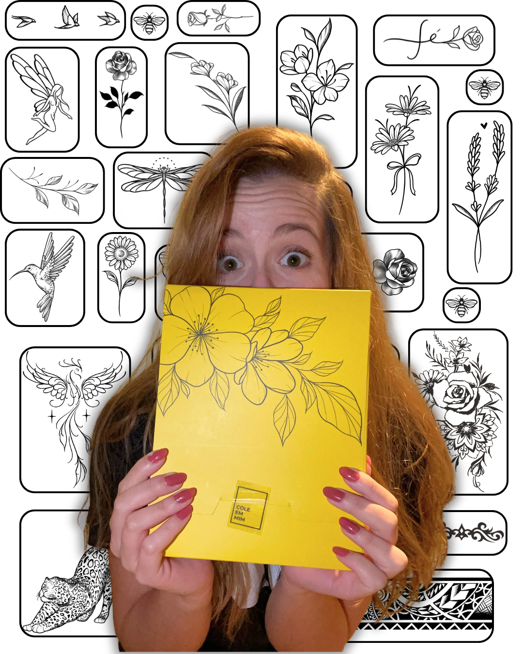• São mais de 500 tatuagens Cole Em Mim Temporárias e Semi-Permanente. Todos designs feitos a mão por Ana Clara Ink em parceria com o fundador do Clube do Risco, Victor Igoh.